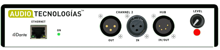 El HUB-DANTE INTERFACE se adapta perfectamente a cualquier red Dante existente. Consta de 2 canales de red Dante, uno que conecta directamente con el HUB de EARTEC y otro para diferentes usos. El potenciómetro en la caratula frontal, puede programarse para controlan distintos niveles del envío de audio de la red Dante a la entrada del HUB. Todos los parámetros del INTERFACE se ajustan con la aplicacion móvil o a través de un navegador web.