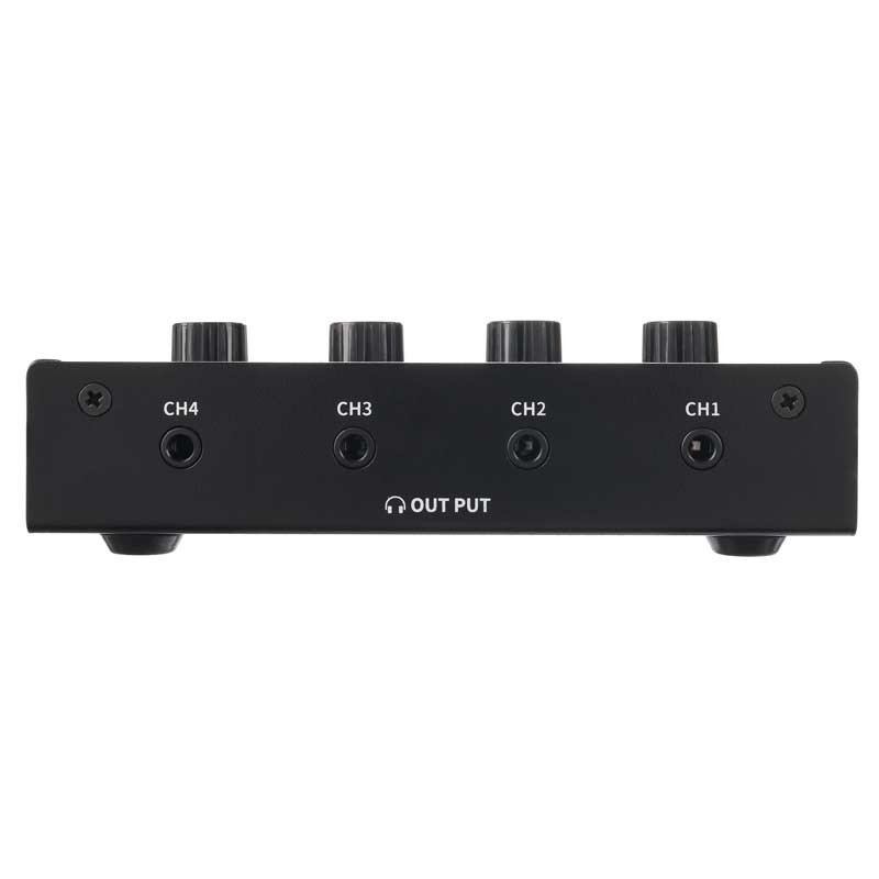 - Con 4 salidas de auriculares separadas (jack estéreo de 3,5 mm)